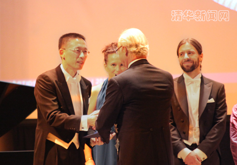 古色古香的斯德歌尔摩音乐厅,伴随着悠扬的音乐,瑞典皇家科学院院院长Barbara Cannon女士宣布颁奖仪式开始。在庄严而又热烈的氛围中,瑞典皇家科学院常任秘书、诺贝尔基金会副主席Staffan Normark院士宣布:瑞典皇家科学院最重要的国际性大奖之一——爱明诺夫奖今年颁给中国清华大学的施一公教授。施一公身穿燕尾服走上领奖台,接受瑞典国王的颁奖,接受现场200多位科学家的祝福与敬意。
