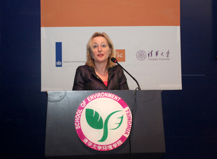 布斯马克女士在致辞中介绍了荷兰的教育、文化、科研发展情况,特别是阿姆斯特丹市的发展情况。她说,荷兰与中国在教育和科研方面的合作源远流长。期待与清华大学在未来不断加强合作,欢迎更多的优秀清华学生到荷兰交流深造。