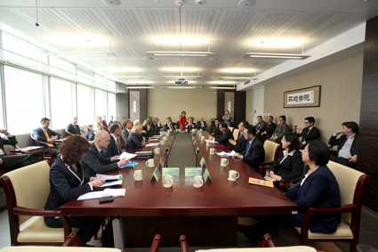 图为陈吉宁会见布斯马克女士及代表团一行。记者 杨艳宾 摄