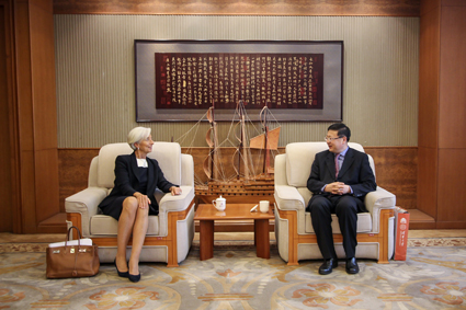 图为陈吉宁与拉加德女士会谈。学生记者 李钧翔 摄