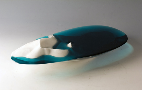 作品《没》,创作始于2012年,即大三第一学期的窑制玻璃(2)的课程,为该课程作业,也是本人第一次制作较大体量的玻璃作品。由于工艺较复杂,经验不足,在制作过程中出现过多次失误,后来在多位老师和学长的指导下,成功完成这件作品,并从中学到了很多。该作品灵感来源于自然摄影作品,有感于自然的壮美和神奇。用被湖水淹没的沙漠,表现自然的奇妙以及其带来的奇迹。自然的一切都在此起彼伏的循环着,沧海桑田,我们有时无法预知下一秒自然会带给我们的是什么。《没》是自然运行的规律,同时《没》也是空无一物的我们。我只想带着对自然的敬畏和喜爱,享受自然赋予我们的感知周围事物的能力。