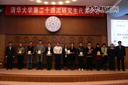 大会通过了《清华大学研究生会章程》修订案,授予2012~2013学年度工作表现突出、成绩显著的10个研究生分会“清华大学优秀研究生分会”荣誉称号,并评出了4个工作进步奖。同时授予全校共107名研究生同学“清华大学研究生会优秀学生干部”荣誉称号。