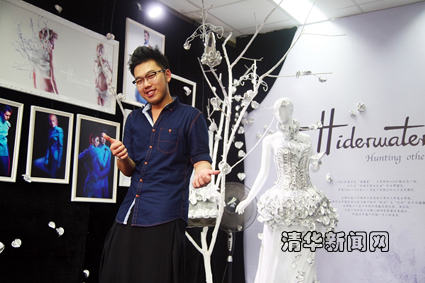 清华新闻网5月24日电 (通讯员 陈夏宣)在5月17日开幕的第九届中国(深圳)国际文化产业博览交易会大学城创意园分会上,清华大学深圳研究生院艺术硕士生刘海涛同学与自创服装品牌Hiderwater首次登场,展出了他设计的系列高级定制服装,吸引了众多关注的目光。这是清华深圳研究生院第一个在校生自创品牌。