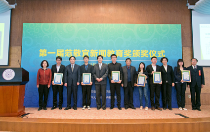 在首先举行的新闻教育奖颁奖仪式上,清华大学新闻与传播学院常务副院长尹鸿介绍了范敬宜新闻教育奖及本届评选情况。来自清华大学、北京大学、中国人民大学等8所高校的新闻专业在读学生获颁“新闻学子奖”,其中清华大学新闻与传播学院张晔同学获得“新闻学子奖”。方汉奇教授和清华大学司久岳教授获得“新闻教育良师奖”,中央电视台主持人白岩松获颁“新闻教育良友奖”。据悉,该奖项是我国唯一一个新闻教育类的奖项。