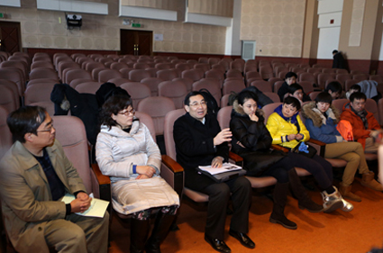 清华新闻网2月22日电 2月19日,校党委书记胡和平来到蒙民伟楼,调研学生艺术团寒假集训工作,并与正在集训的清华大学原创话剧《两弹元勋邓稼先》主创人员和参演同学座谈,校党委副书记史宗恺一同调研。