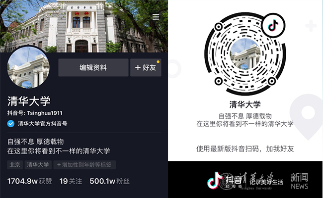 清华大学官方抖音账号粉丝数破500万