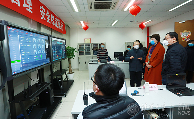 在学校西门,陈旭感谢值班工作人员为学校提供了出色的安保服务,要求加强校门管理,保证校园假期安全稳定。在了解了清芬园餐厅供餐情况以及天猫校园店商品供应情况后,陈旭希望坚守岗位的工作人员能为留校师生提供优质的服务。在紫荆学生区综合指挥室和修缮中心供热中心,陈旭察看了学生区安消设备的运行情况,询问了供暖系统运行状况和学生公寓洗澡热水供应情况。在街道办城管指挥中心,陈旭了解了家属区春节期间工作安排和接诉即办情况,强调要做好烟花爆竹禁放和武汉来京人员排查等工作。