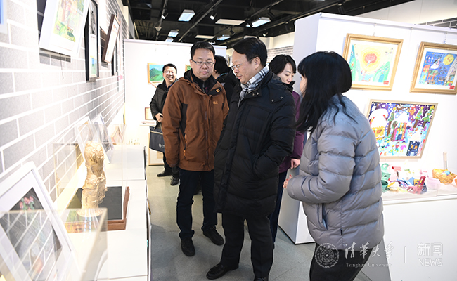 王希勤参观附小学生的艺术作品