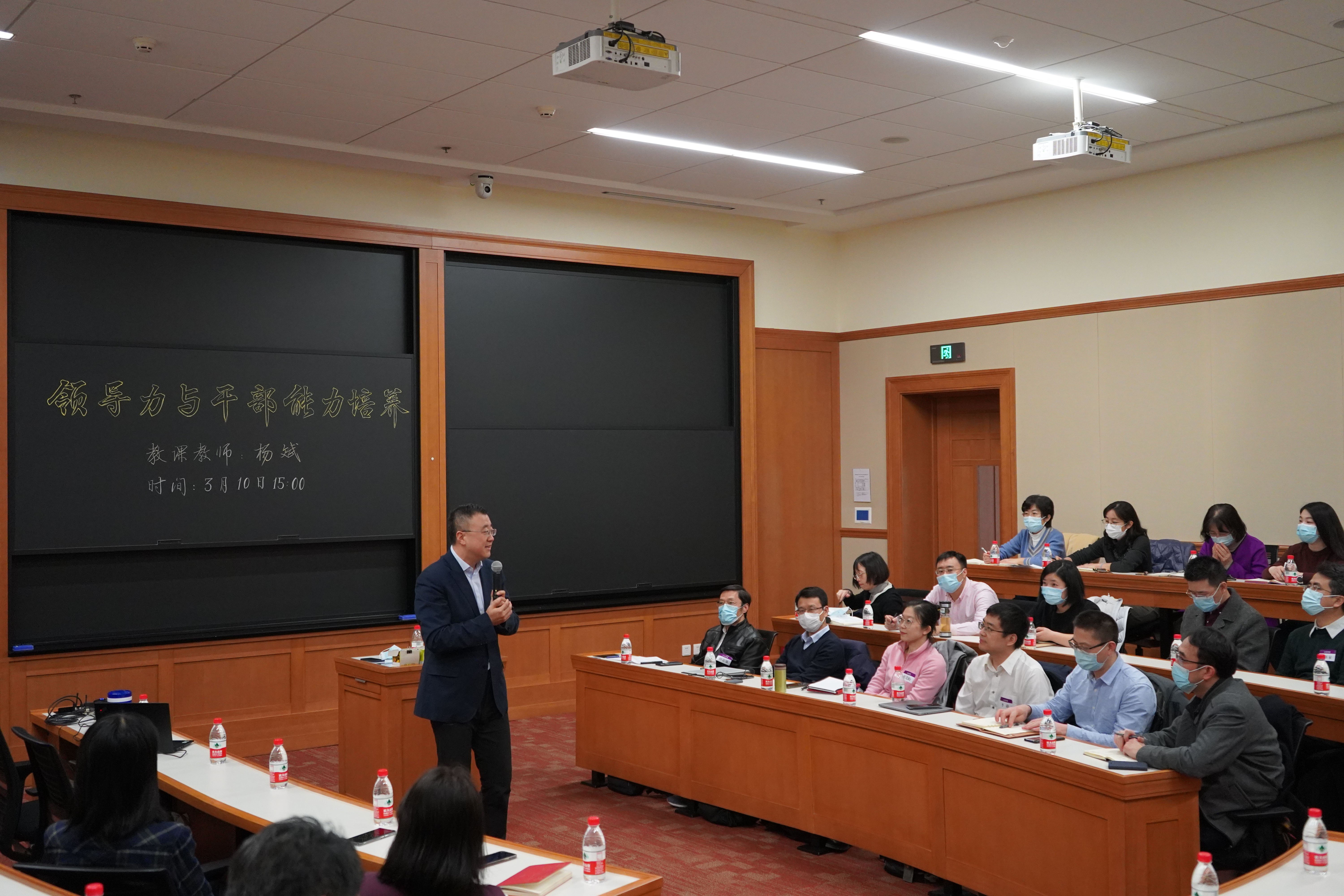 杨斌围绕“什么是组织”“如何有效的发挥组织作用”“干部能力培养”等方面,结合学校实际工作进行了深入浅出的阐释。杨斌表示,领导能力是指一系列行为的组合,领导力与组织的发展密不可分。组织有效性的前提是目标的正当性,以及完善的制度和文化建设,但从知识型组织领导者的角度来看,更要注重通过多种方式充分调动组织成员的积极性和主动性,促进组织成员与组织协同发展,实现组织的使命和目标。为此,针对如何增强组织和组织者的领导力,他提出从“名头”——明晰岗位与责任、“甜头”——显性的工作获得感、“苦头”——纪律、压力、“奔头”——组织愿景、个人成长、“嚼头”——工作的挑战度和技术含量、“讲头”——工作的意义感、“心头”——组织的情感维系七个方面着力激励组织成员,进而达成组织的使命和目标。