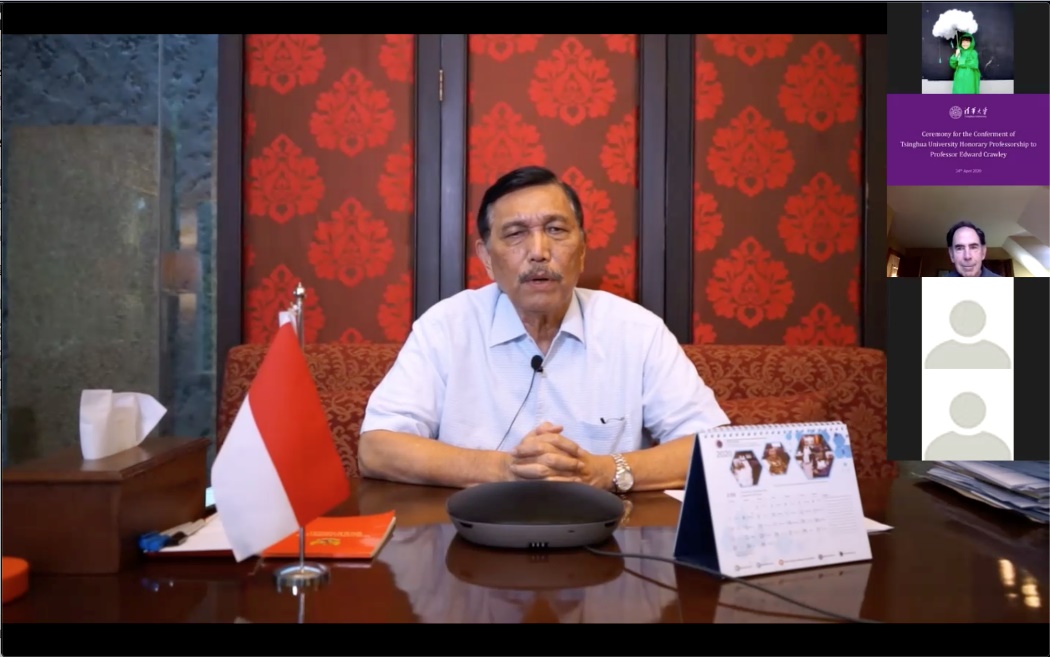 清华新闻网4月24日电 北京时间4月24日晚,清华大学校长邱勇在工字厅东厅通过视频连线,为麻省理工学院教授爱德华·克劳利(Edward Crawley)举行了清华大学名誉教授聘任仪式。邱勇在线为位于美国波士顿的克劳利颁发聘书,并宣布聘请他担任清华大学东南亚中心教务长。清华大学副校长、教务长,清华大学东南亚中心(印尼)基金会共同理事长杨斌主持仪式。印尼总统特使、海事统筹部长卢胡特·潘查伊坦(Luhut B.Pandjaitan),印尼四海一家公益基金会总裁图蒂·哈蒂普特拉托(Tuti Hadiputranto),清华大学东南亚中心(印尼)基金会共同负责人格德·阿尔迪卡(I Gede Ardika)、林美金等嘉宾在线出席仪式。清华大学国际处处长郦金梁、清华大学东南亚中心主任刘震、清华大学深圳国际研究生院执行院长高虹等参加仪式。