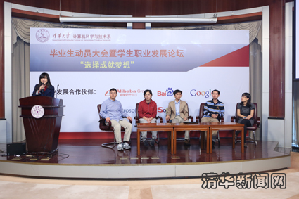 在学生职业发展论坛大会上,计算机系副系主任赵有健、陈文光,系党委副书记刘奕群,微软(亚洲)互联网工程院常务副院长方黎江,阿里巴巴技术发展部总监刘湘雯,百度校园品牌项目经理王涛,谷歌工程部经理杨帆,搜狗桌面事业部高级总监杨磊等公司高管出席活动。刘奕群通过讲述2003级国防生系友、济南军区铁军师“红一连”连长、十八大代表楚科纬的故事,希望同学们在做职业选择时大家要摆正心态、不随大流,要在清晰分析自我和了解用人单位的基础上,“择己所爱,爱己所选”,并在职业选择上应该“志存高远,追求卓越”,成长为一名可堪时代重任的清华人。