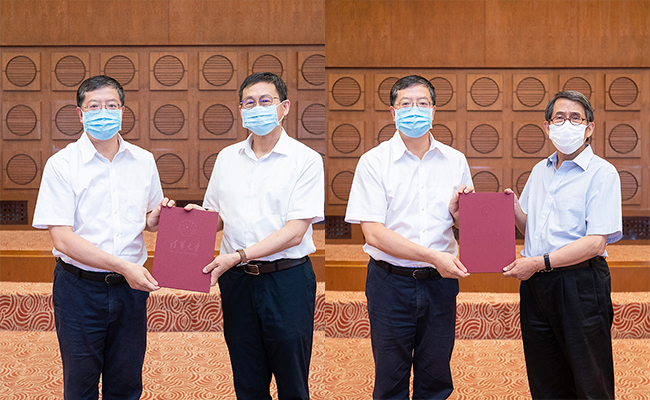 清华新闻网7月14日电(记者 吕婷 摄影 李派)7月8日下午,清华大学第二届教学委员会成立暨教学委员会2020年第二次全体会议在主楼接待厅举行。会议宣布了第二届教学委员会委员名单,校长、教学委员会主任邱勇为第二届教学委员会委员颁发聘书,委员们审议通过了强基计划五个书院的培养方案、增设统计学本科专业的申请以及2019年度清华大学“青年教师教学优秀奖”和清华大学年度教学优秀奖(2019年度)的获奖名单。邱勇主持会议,副校长、教务长杨斌,副校长彭刚出席会议。