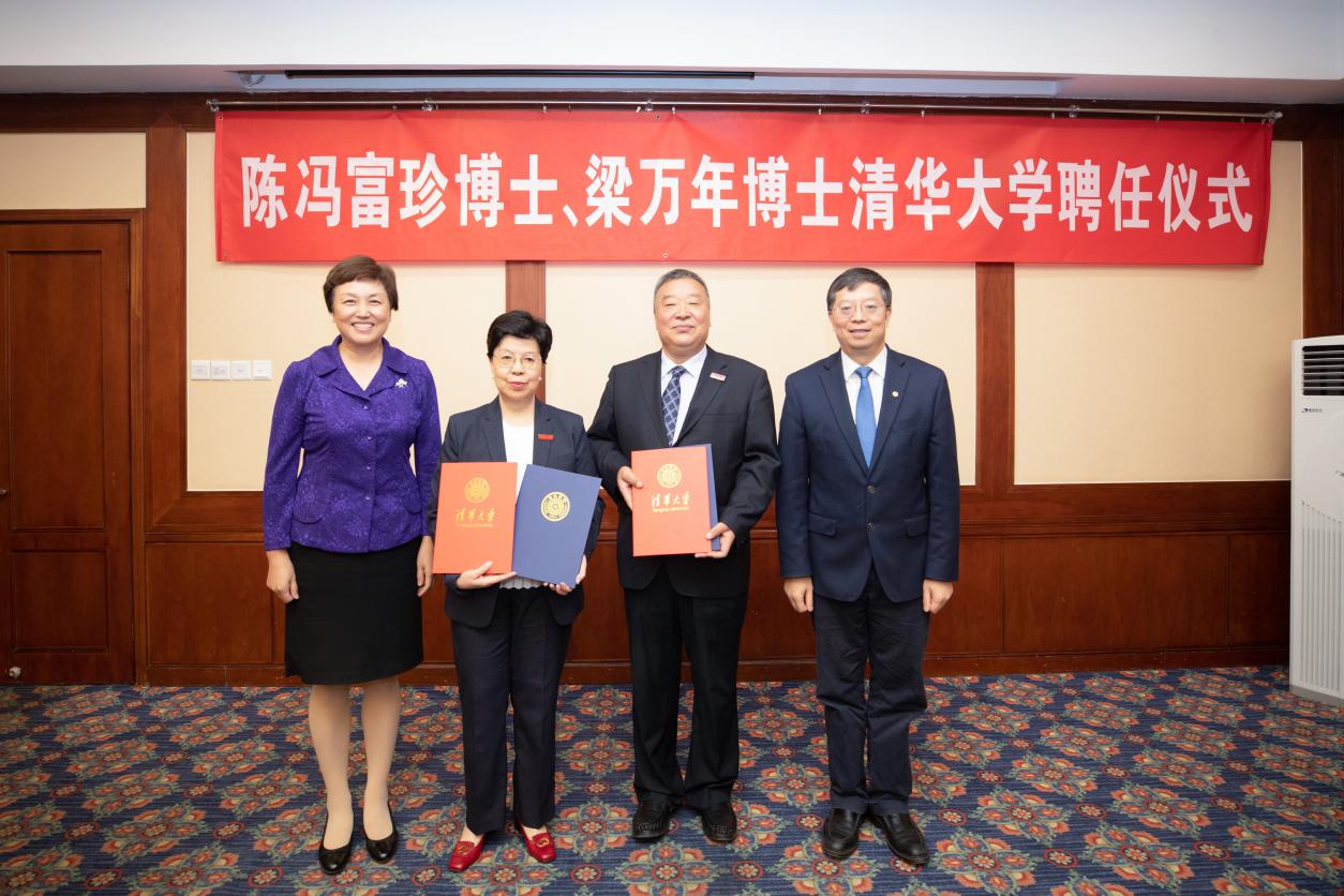 清华新闻网9月19日电(记者刘书田 摄影李派)9月17日晚,清华大学在丙所举行陈冯富珍、梁万年聘任仪式,聘请陈冯富珍、梁万年为清华大学万科讲席教授,并聘请陈冯富珍为清华大学万科公共卫生与健康学院院长、梁万年为清华大学万科公共卫生与健康学院常务副院长。校长邱勇,校党委书记陈旭,副校长杨斌、郑力,公共管理学院院长江小涓、苏世民书院院长薛澜等出席仪式。仪式由郑力主持。
