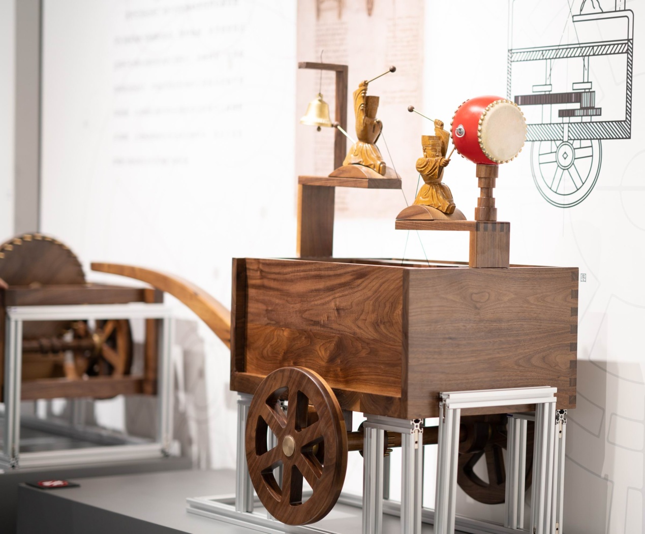 “在仪器的研究性复原工作中,不管是选材还是加工都要非常考究,才能保证展品质量,再现仪器的年代感。”清华科学博物馆复原项目负责人、科学史系助理教授王哲然提到。他们团队在复原达芬奇里程计、记里鼓车等时,邀请了科学史、工业设计、材料科学专业的师生加入,前后耗时2个月,有时每天需要工作10小时以上,才最终完成。