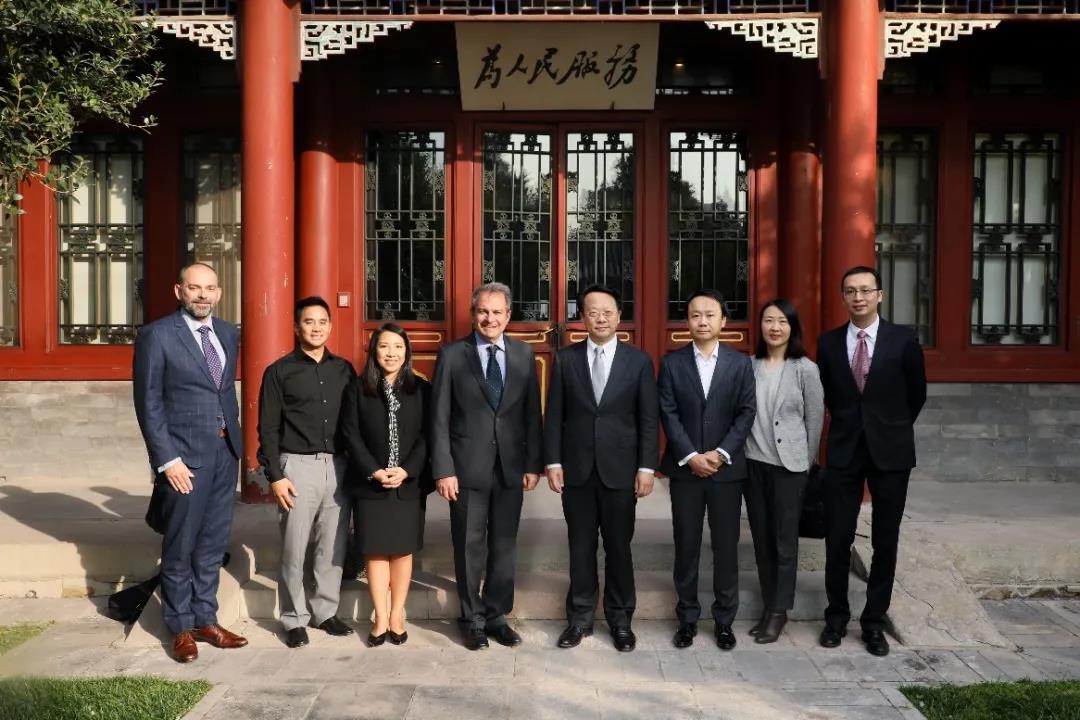 2019年11月,药学院顾问委员会委员、百健(Biogen)首席执行官Michel Vounatsos先生来访,清华大学常务副校长王希勤与其交流合影。