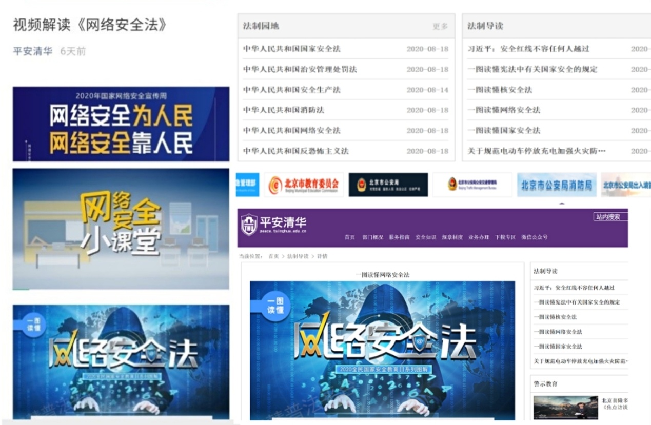 清华新闻网9月23日电 第七届国家网络安全宣传周于9月14日至20日举行。为深入学习贯彻习近平总书记关于网络强国的重要思想,提升全校师生网络安全意识和防护技能,营造清朗的网络环境,学校结合疫情防控形势,制定工作方案,校党委宣传部、信息办、信息化技术中心、保密办、人事处、学生部、研工部、校团委、保卫部、街道办、物业中心、离退休处等多部门积极响应、协同联动,积极组织开展网络安全周系列活动。