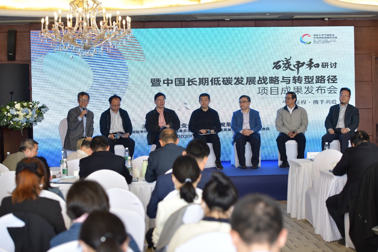 清华大学能源环境经济研究所所长张希良主持了第二场圆桌会议,各机构单位就其承担课题的研究成果进行了分享。中国科学院战略咨询研究院副院长王毅、中国科学院生态文明所所长潘家华、国家信息中心经济预测部首席经济师祝宝良、清华大学环境学院教授贺克斌院士、能源基金会首席执行官兼中国区总裁邹骥、清华大学能源环境经济研究所副教授滕飞等专家学者分别发表观点和结论。