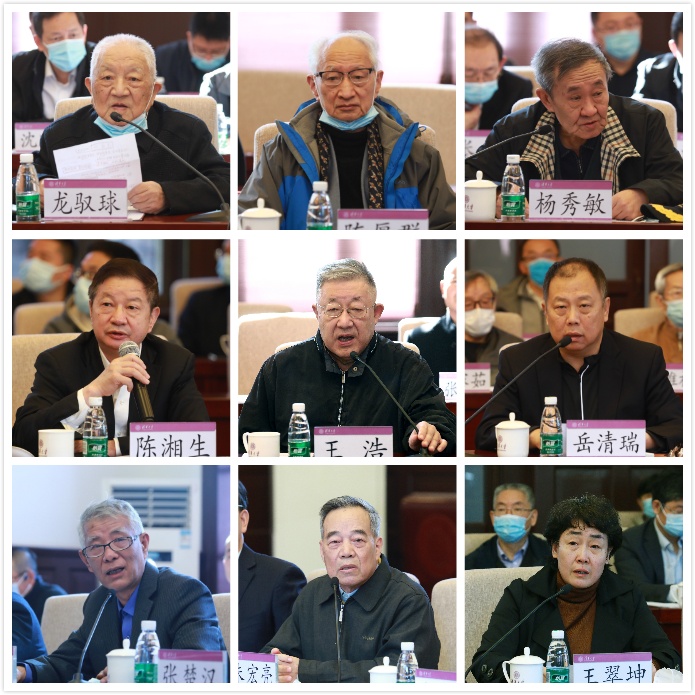 钱七虎、江欢成、缪昌文、任辉启、刘西拉、毛志兵、邢锋先后发言(从上到下、从左到右)
