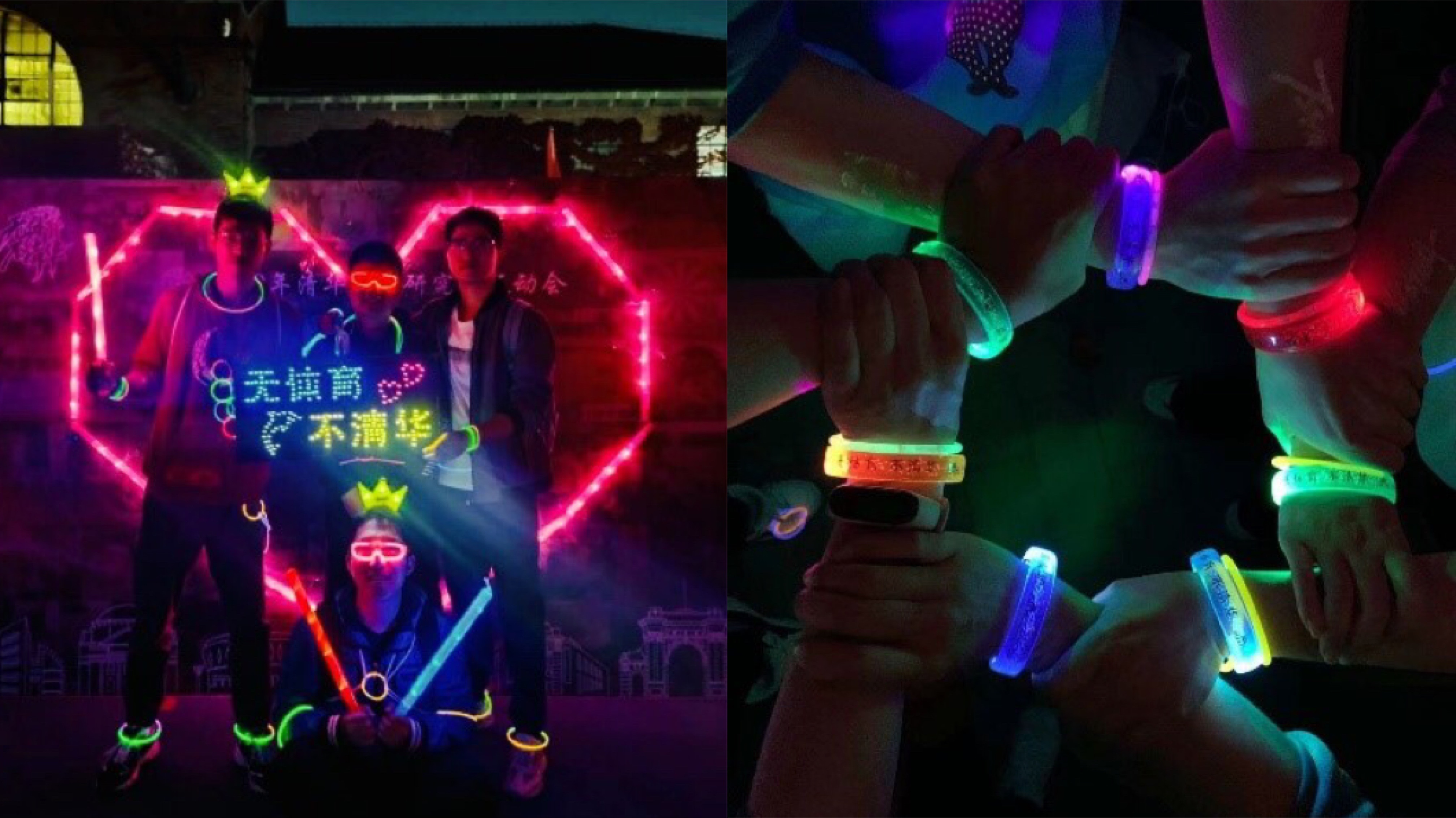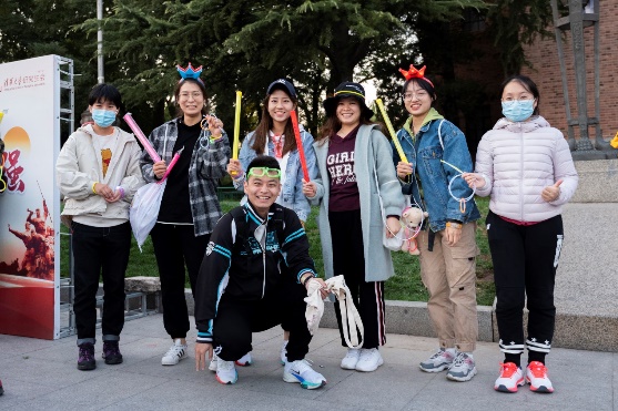 下午五时,荧光夜跑环节正式开始。荧光夜跑以新颖的形式吸引广大师生关注和报名。现场2000余名师生佩戴各具特色的荧光饰品,从西操出发,在大礼堂“一二·九”站点、东操“无体育不清华”站点、紫操校庆站点等打卡留念,绚丽光彩点亮傍晚时分的清华园,留下欢乐的青春印记。