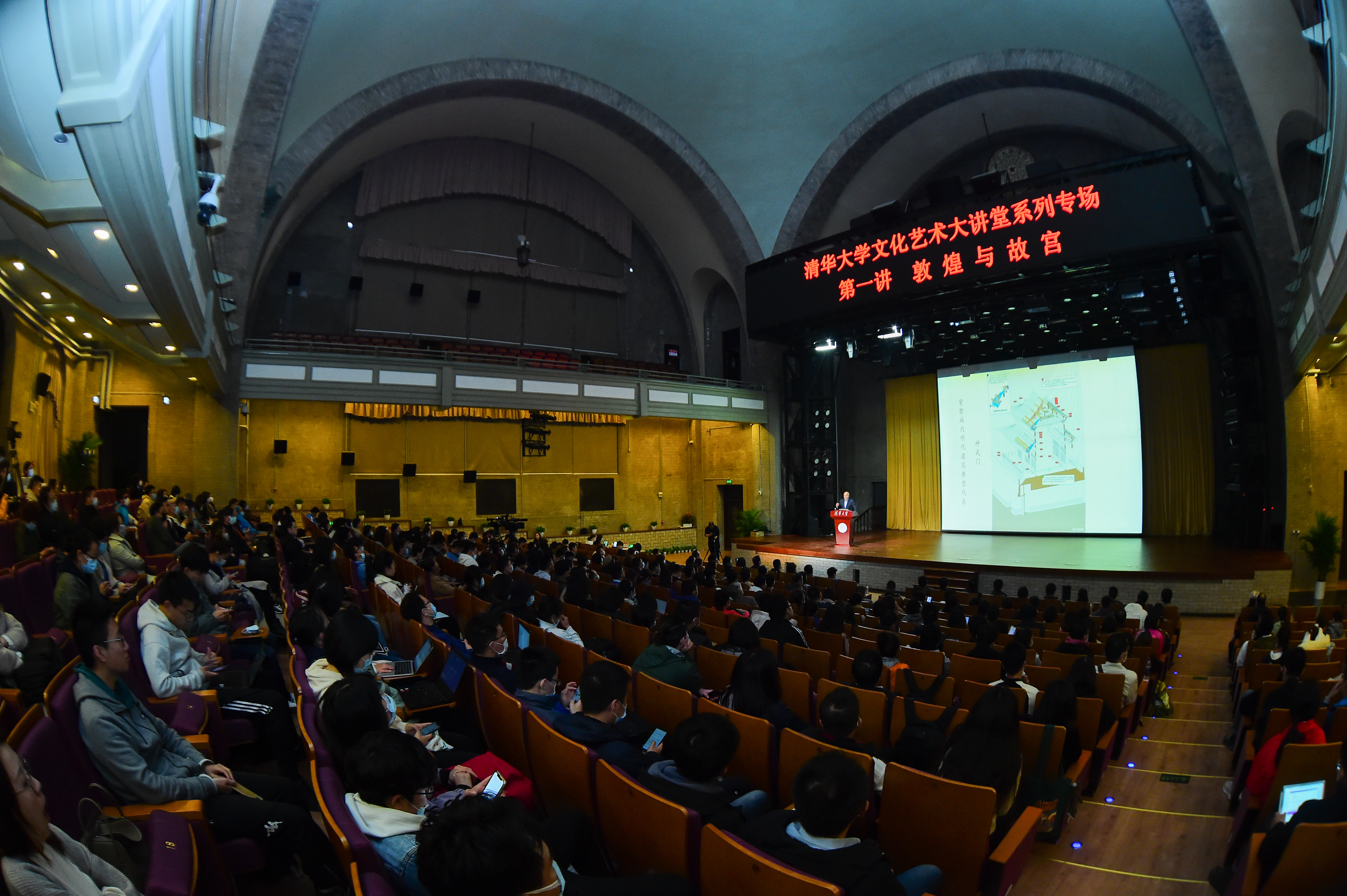 清华新闻网10月23日电 10月20日晚,由清华大学文化经济研究院与清华大学国家大学生文化素质教育基地联合主办的清华大学文化艺术大讲堂(以下简称“文艺清华”)于清华大学大礼堂拉开帷幕。此次讲座系“文艺清华”第一讲,邀请故宫博物院院长王旭东以“敦煌与故宫——不同力量铸就的文化丰碑”为主题,为现场师生讲述了中国文化的传承与创新之旅。讲座由清华大学副校长彭刚主持。