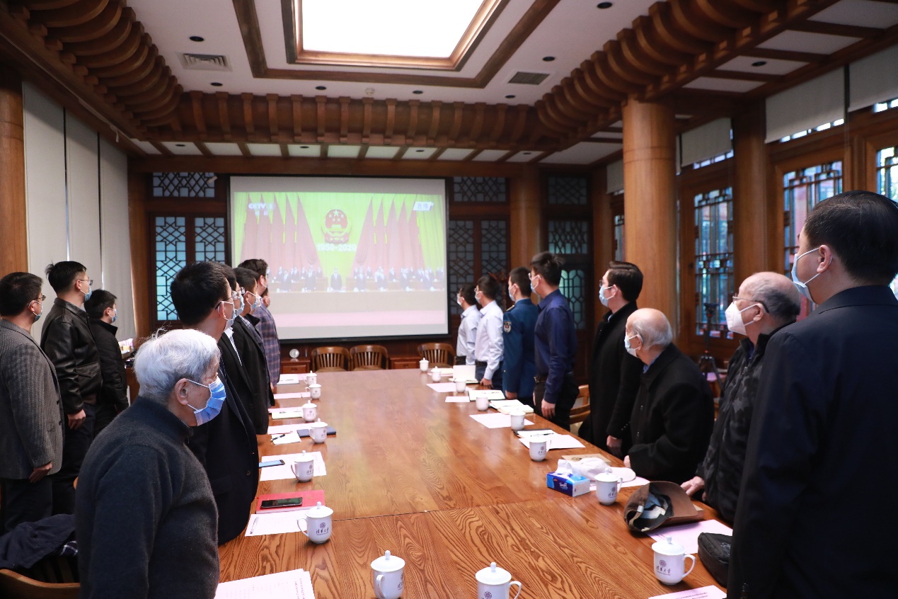 在工字厅东厅,校党委书记陈旭,校党委副书记向波涛,参加抗美援朝的老同志代表姜锡华、姚季、苏佑臣,以及部分师生代表齐聚一堂,共同收看纪念大会。与人民大会堂同步,与会师生起立唱响国歌,并向牺牲的革命英雄默哀。在直播结束后的座谈交流环节,大家纷纷畅谈对抗美援朝精神的感悟,结合自身的使命担当展望未来。