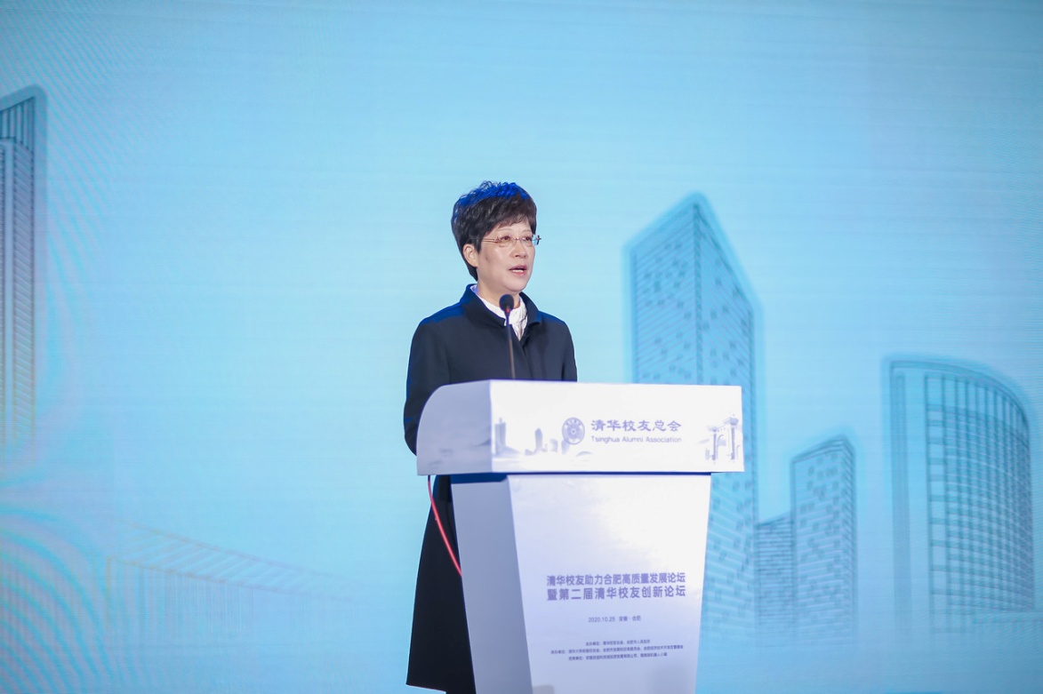 凌云在致辞中介绍了合肥市的发展近况,感谢清华大学一直以来对合肥市经济建设和社会发展的支持与帮助,并欢迎更多的清华校友来合肥创业就业。
