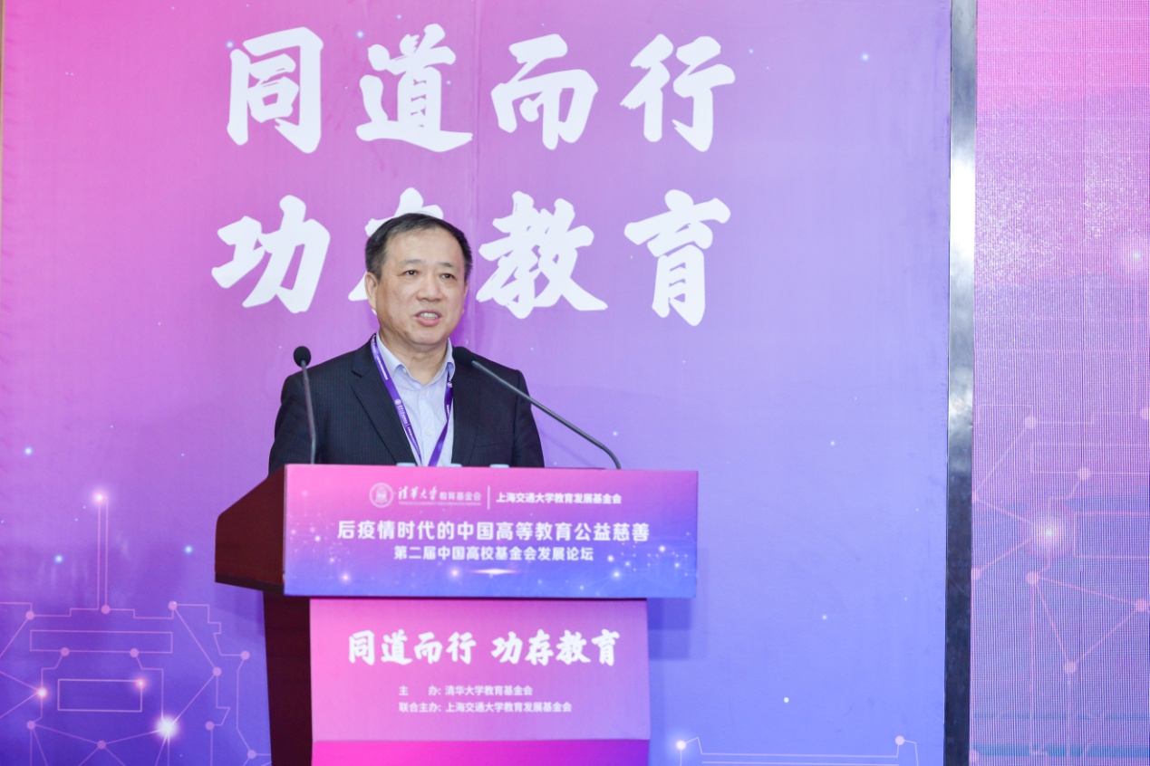 赵路表示,党的十九届五中全会提出了建成教育强国的目标,对今后一个时期我国教育发展改革提出了新要求,也为我国高校基金会今后的发展指明了方向。我国的高等教育一直实行由举办者投入为主,受教育者合理分担培养成本,接受社会捐赠的多渠道筹措经费的体制,总投入一直呈上升势头。今年,受疫情冲击,世界经济严重衰退,我国财政预算安排压力很大,在多渠道筹措高等教育经费的大格局下,高校基金会始终是一支不可或缺的重要生力军。赵路指出,高校基金会通过吸纳社会资源,积极支持高校各项事业的发展,尤其是在服务国家战略、回应社会需求等领域取得了可喜成果。特别是清华基金会、上海交大基金会等很多高校基金会,有很多好做法、新经验,值得相互借鉴学习。当前,疫情仍在世界肆虐,国际形势十分严峻复杂,这必然对我国高校基金会发展带来深远影响,需要我们深刻认识新形势、新变化,主动应对,攻坚克难,抓住机遇,迎接挑战。