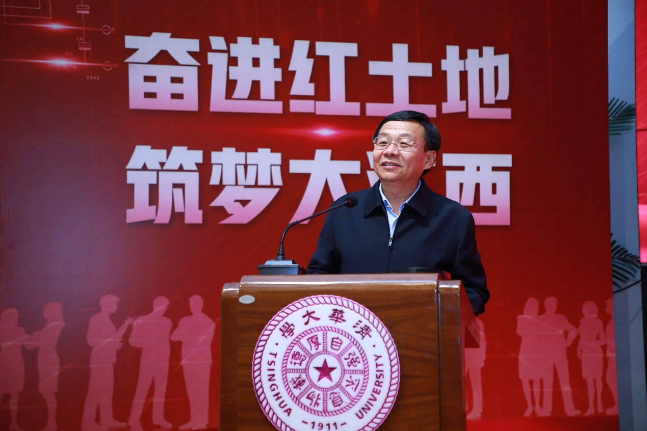 过勇在致辞中感谢江西长期以来对清华发展建设的支持,介绍了清华大学就业引导工作经过十余年探索和实践所取得的积极成效。他表示,当前的江西正处于高质量跨越式发展的关键时期,是一个发展潜力巨大、事业空间广阔的干事创业的舞台。希望同学们能够关注江西,选择江西、建设江西,扎根江西,不忘初心,努力为江西的经济社会发展,为实现中华民族伟大复兴的中国梦作出贡献。