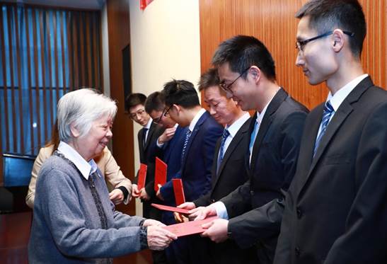 本年度共有20名化工系和化学系的博士生获得“清华之友—高英士奖学金”,16名化工系和化学系的研究生、本科生获得“清华之友—长兴奖学金”,2名分别来自物理系和航天航空学院的本科生获得“清华之友—承宪康纪念奖学金”。贺美英、化工系党委书记王铁峰、化学系党委书记梁琼麟向获奖学生颁发证书并合影留念。