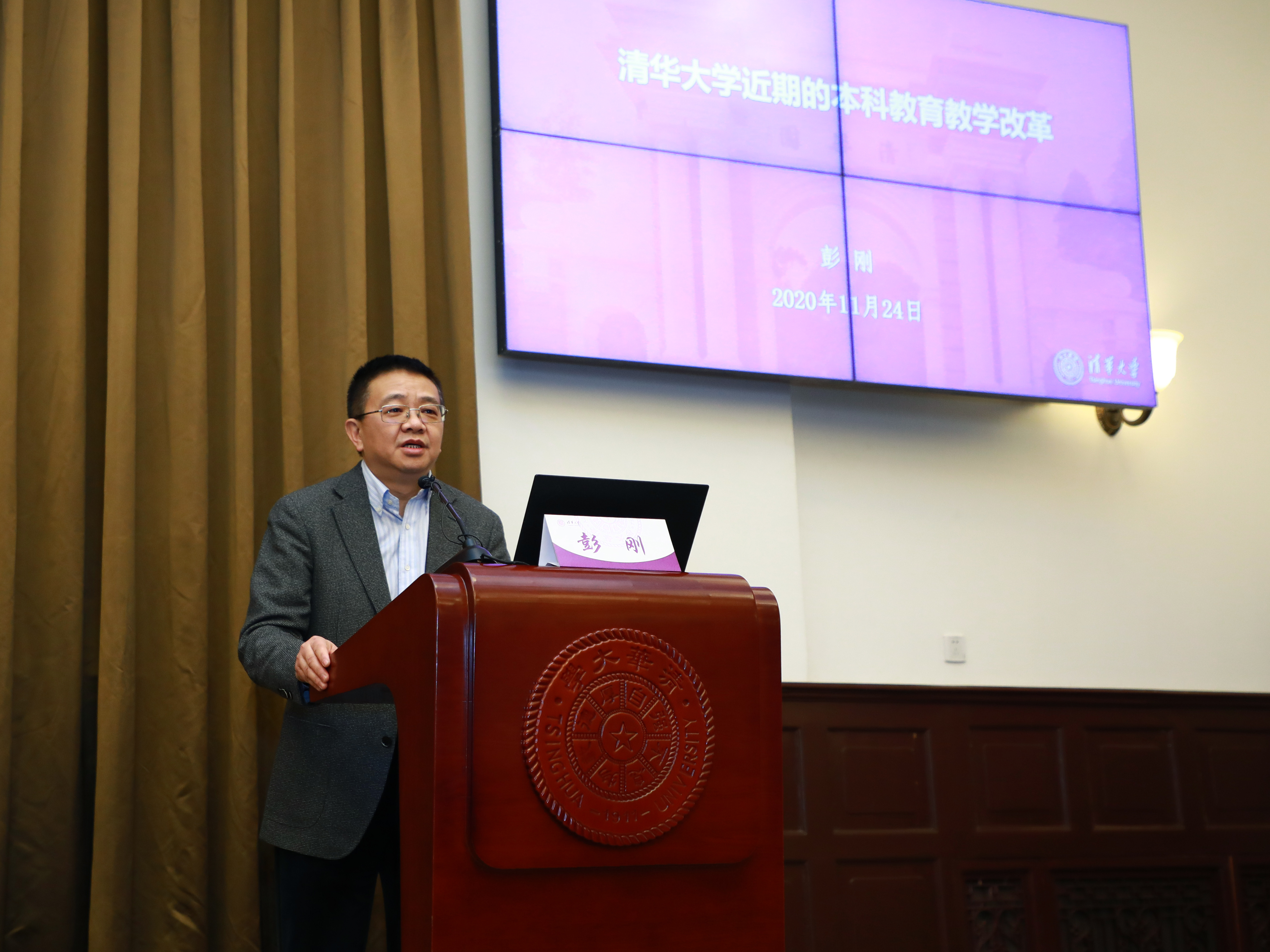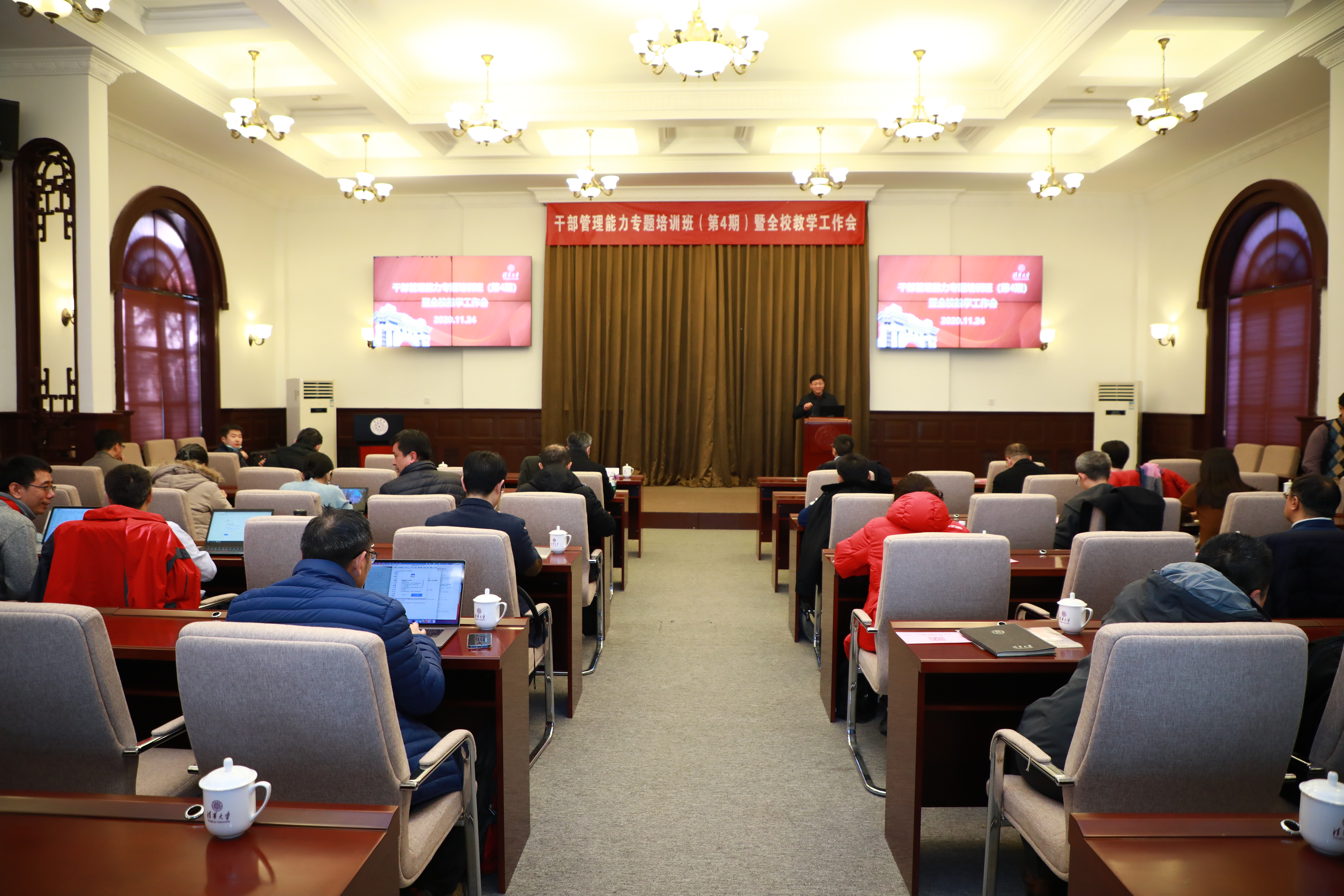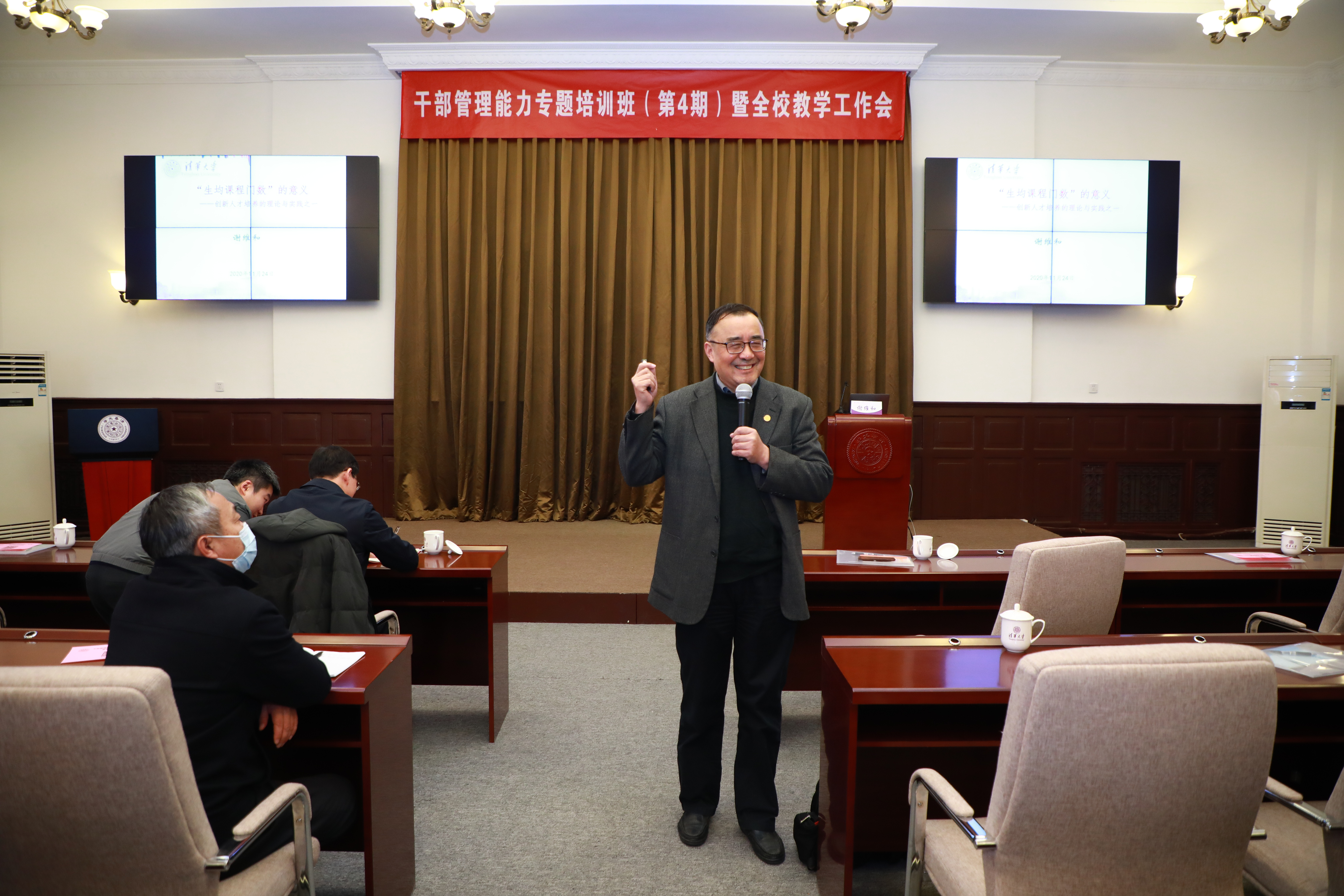 清华新闻网12月11日电 11月24日上午,“清华大学2020年干部管理能力专题培训班(第四期)暨全校教学工作会”在二教会议室举行。副校长彭刚作开班报告,校务委员会副主任、文科资深教授谢维和作专题报告,校党委常委、组织部部长、统战部部长许庆红主持。学校各单位主管教学工作的校管干部,以及教务处、研究生院、书院管理中心等部门的50余位校管干部参加了培训学习。