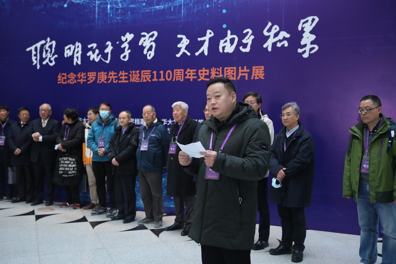 范宝龙在致辞中表示,今年是华罗庚诞辰110周年,为了纪念这位杰出的数学家,清华大学校史馆、清华大学档案馆、清华大学数学科学系、清华大学丘成桐数学中心和江苏金坛华罗庚纪念馆联合举办纪念华罗庚诞辰110周年纪念展,缅怀华罗庚先生为科学教育事业奋斗的一生。本次览展集中展示了60多幅华罗庚先生的照片和80多件珍贵的史料和文物。通过丰富的史料和鲜活的实物,生动展示了华罗庚不平凡的一生,科教报国的爱国情怀和勇攀高峰的科学精神。希望通过本次展览,充分发挥史料的育人作用,激励广大师生学习华老的崇高品质,弘扬科学家精神、传承中华民族优良传统,更好地学习、工作,为清华建设世界一流大学、为国家民族发展作出更大的贡献。