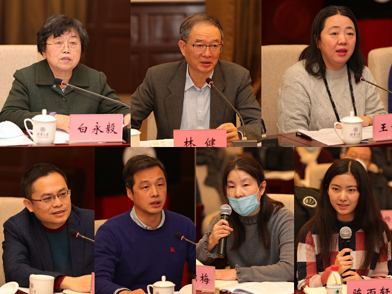 评估组成员发言(从左至右,从上至下:白永毅、林健、王雪莉、朱兵、赵建世、牛洁梅、陈雨轩)