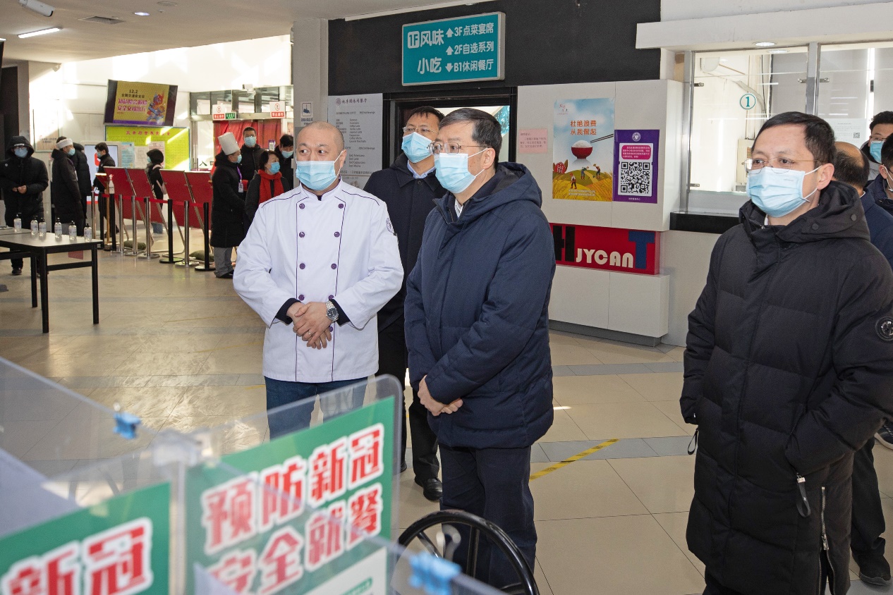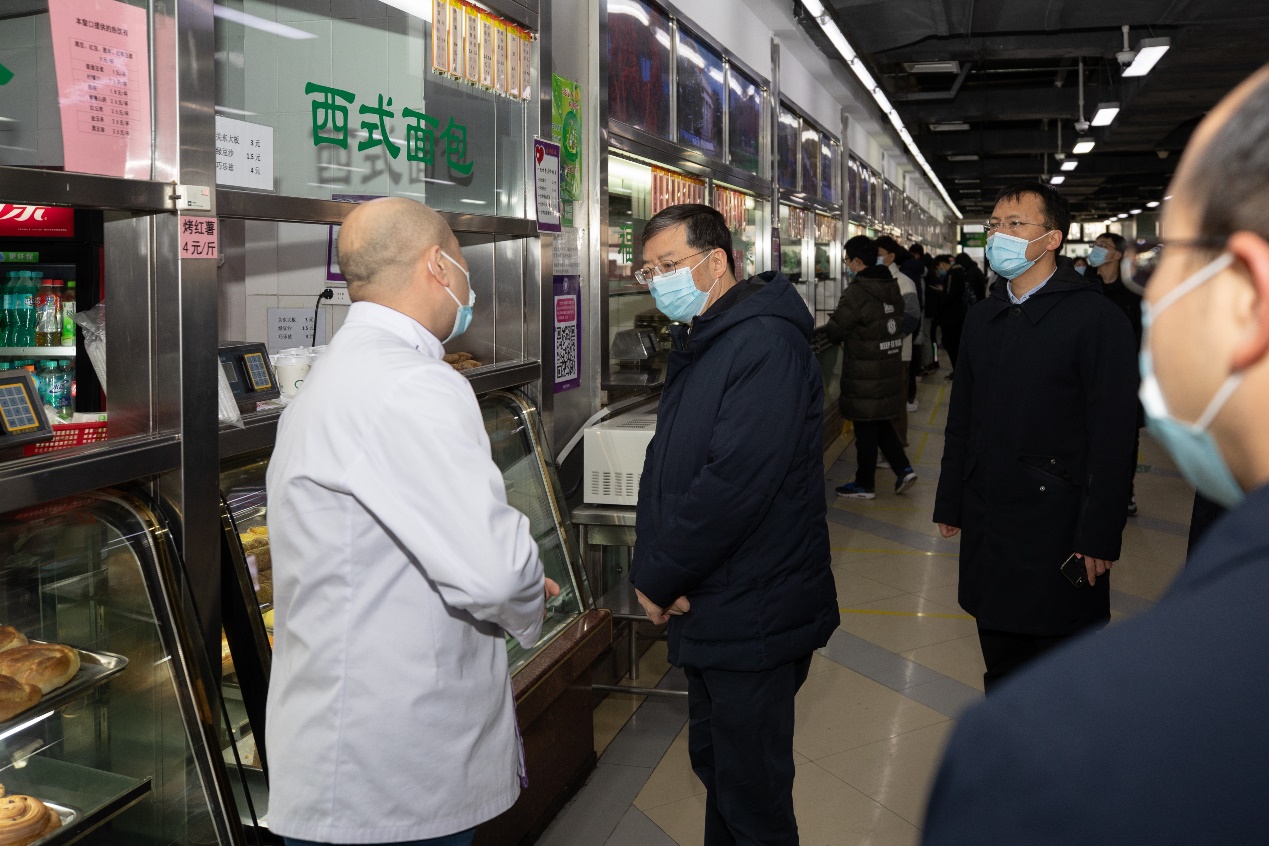 邱勇一行先后来到东南校门、环境节能楼、第六教学楼、土木馆、紫荆学生公寓4号楼等重点场所,详细检查入校车辆、人员管控情况,教学楼、实验室、学生宿舍的防疫要求及措施、体温检测设备的管理运行和使用、发现疑似新冠肺炎患者的应急预案、留观区设置等一系列楼宇防疫措施。在桃李园餐厅对防疫消杀、进门测温等疫情防控措施进行仔细检查,对餐厅菜品质量和假期餐厅运营情况进行详细了解。