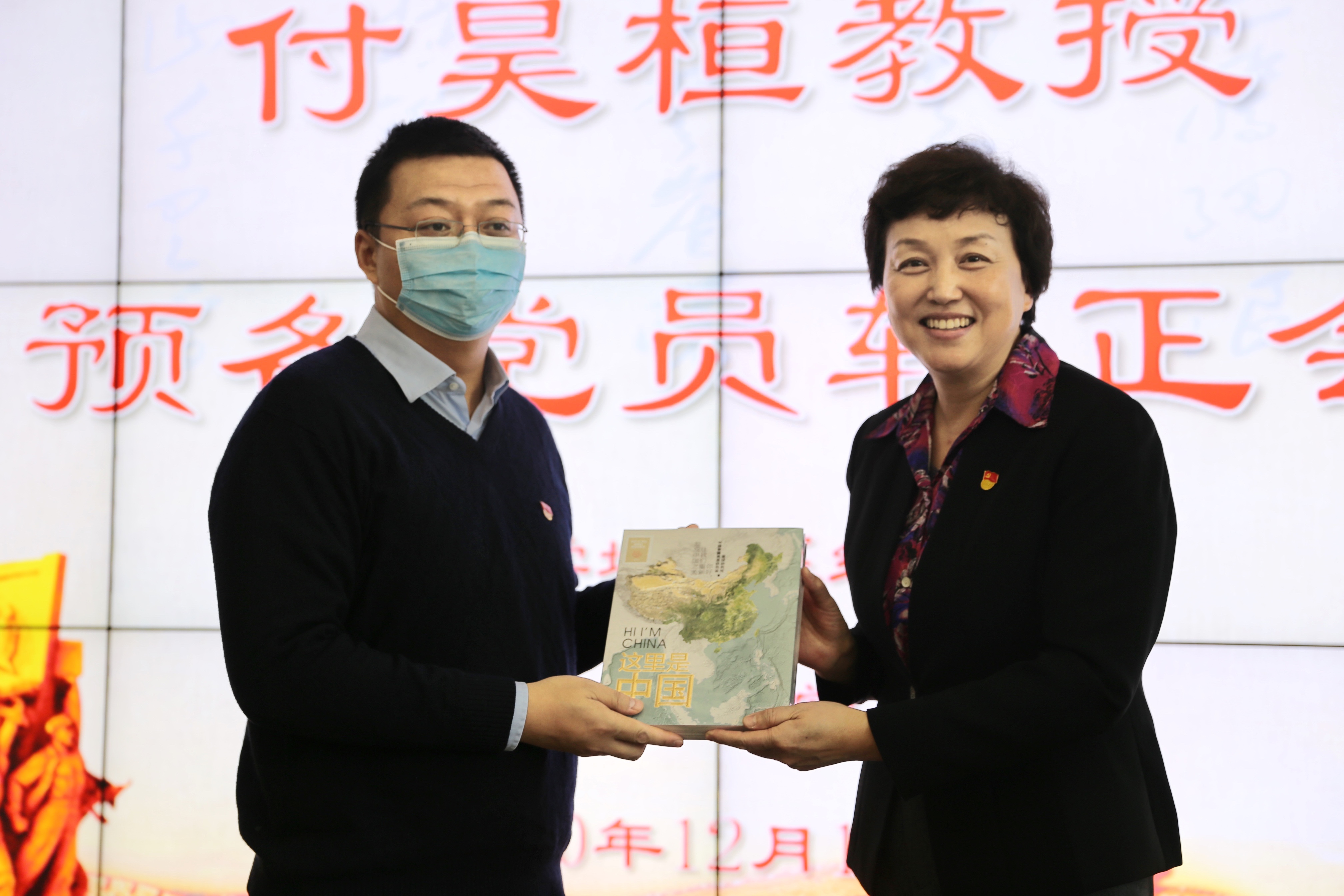 会后,陈旭代表校青年教师骨干领航工作站向付昊桓赠阅学习书籍《这里是中国》,并与与会人员合影留念。地学系教职工党员、入党积极分子及师生代表共20余人参加转正会。