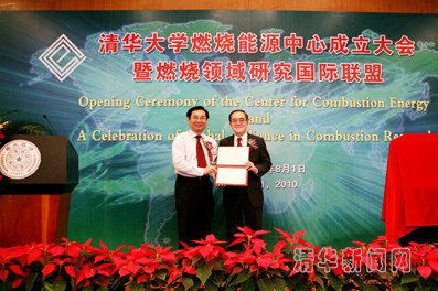 【新闻中心讯】8月1日,清华大学燃烧能源中心成立大会在主楼接待厅举行。成立大会上,校党委书记胡和平,国际燃烧领域著名学者、美国工程院院士、燃烧能源中心主任罗忠敬共同为中心揭牌。校党委常务副书记陈旭主持仪式。副校长袁驷宣读了清华大学关于成立燃烧能源中心的有关决定。