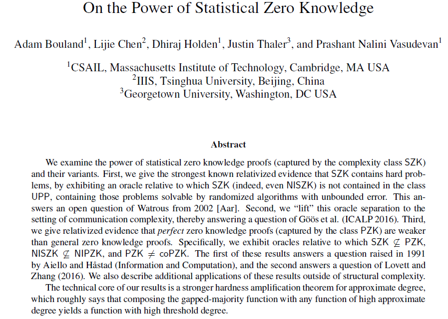 2017年,姚班计科30班陈立杰作为首位在FOCS上发文的中国籍本科生,解决了计算复杂性领域的一个重要开放难题
