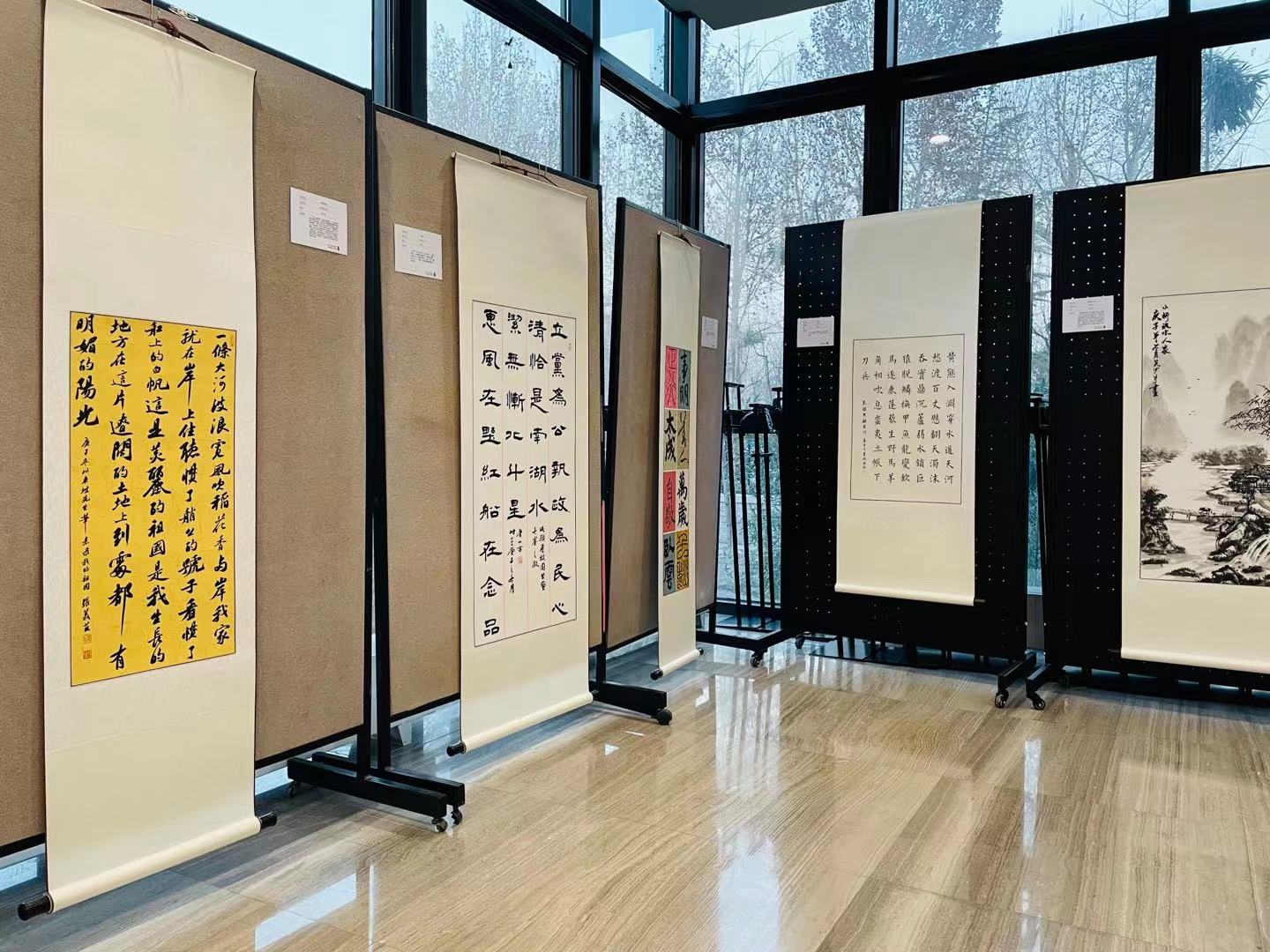 美术社承办的六校联合校园书画大赛作品展展览现场