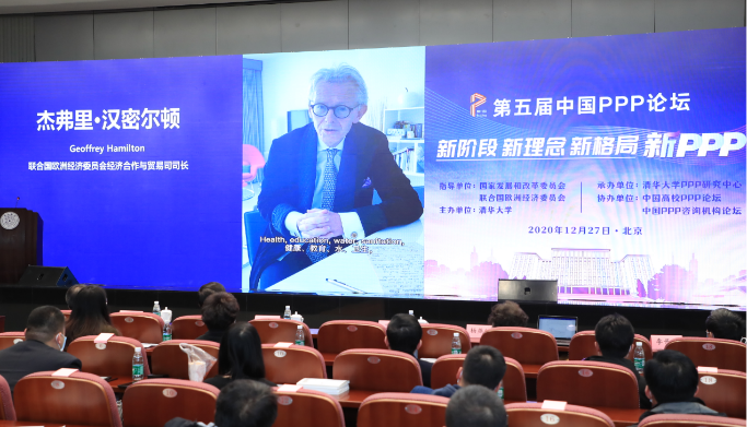 杰弗里·汉密尔顿在视频致辞中对第五届中国PPP论坛的成功召开表示祝贺。他指出,联合国欧洲经济委员会专家团队历时三年,开发出了PPP项目评估工具,用于评估基础设施项目是否符合联合国可持续发展目标。该评估工具既有利于践行以人为本的PPP模式,也有利于后疫情时代世界经济复苏。他期待与清华大学PPP研究中心开展合作,共同推广这一评估工具,助推联合国可持续发展目标。