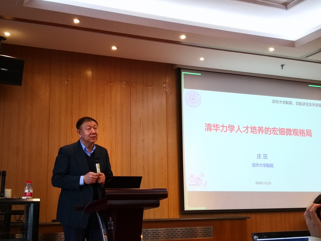 清华新闻网12月31日电(通讯员 范文琦 刘智珂 韩炳铮 杜娟)12月25日下午,清华大学航天航空学院庄茁教授做客航院“启航讲堂”,为师生带来题为“清华力学人才培养的宏细微观格局”的精彩讲座。讲座采用现场报告和线上直播相结合的模式。航院黄克智院士、院长李路明等120余位师生在线上线下参加活动,航院党委副书记葛东云主持活动。