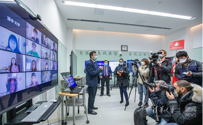 “什么是雨课堂?”“体育课如何开展在线教学?”“清华的举措对其他国家高校有何借鉴意义?”2月28日上午,清华大学联合外交部新闻司、北京市政府新闻办公室、北京市教育委员会组织境外媒体集体来校采访,邀请了包括路透社、法新社、日本共同社、俄罗斯全国广播电视公司、荷兰广播电视协会电视部等多家境外主流媒体的记者,就清华全面如期在线开课进行了简短而高效的采访拍摄活动。记者们被清华大学在线教学的举措和成效深深吸引,与师生们在屏幕前热烈互动交流。