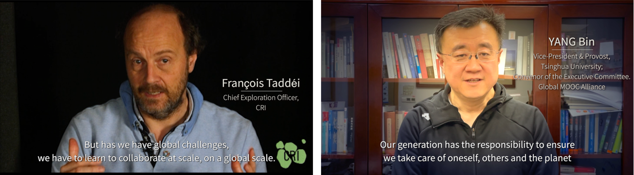 针对挑战式学习,世界慕课联盟秘书处邀请弗朗索瓦·塔代伊教授与杨斌教授录制视频进行讲解。弗朗索瓦·塔代伊指出,可持续发展目标是全人类共同面对的挑战,涵盖技术、环境与社会等方面,唯有共同学习,相互合作,利用技术链接学习与梦想的孤岛,为可持续发展目标做出贡献。杨斌指出,我们这一代人要承担起关爱自己,关爱他人,关爱世界的责任。在疫情对教育可持续发展造成破坏的背景下,高等教育需要通力合作,调动师生们的创造力,让教育重回正轨,为公众提供开放、公平与优质的教育,为这一代人创造更美好的环境。