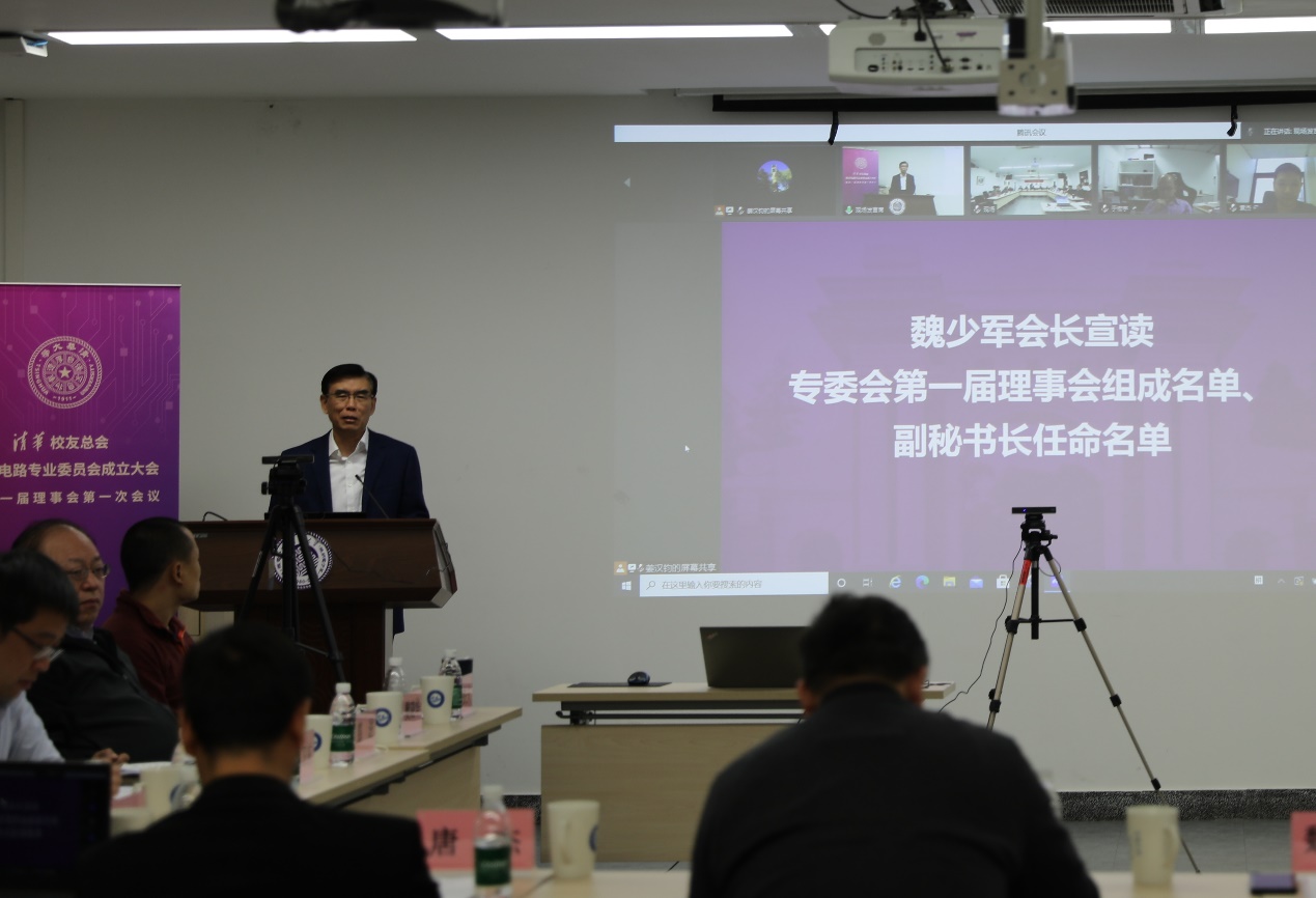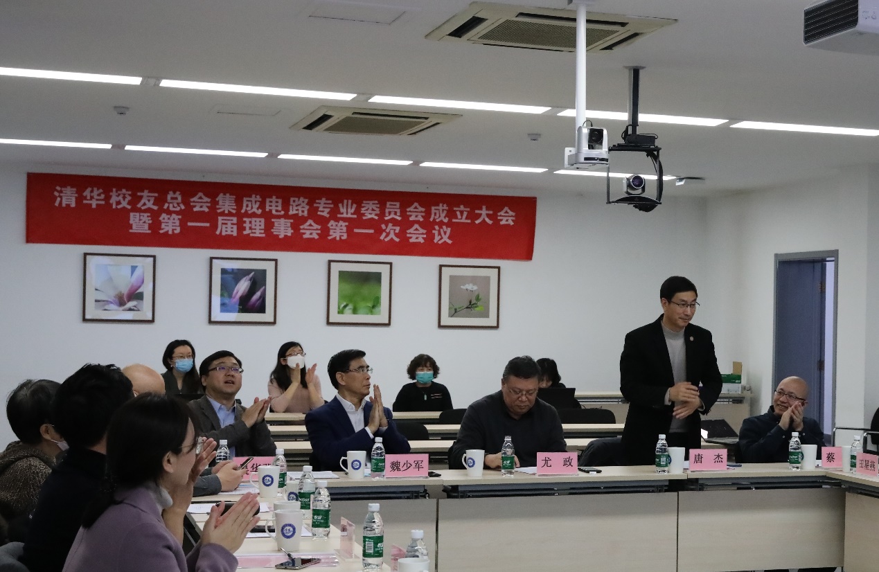 清华校友总会秘书长唐杰代表清华校友总会宣读了《关于成立清华校友总会集成电路专业委员会的批复》,以及对专委会主要负责人的任命决定。魏少军担任专委会第一届理事会会长,陈大同、吴华强担任常务副会长,王志华、赵海军、朱一明、汪玉担任副会长,刘卫东担任专委会秘书长。