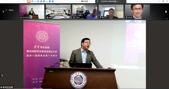 成立大会结束后,举行了集成电路专委会第一届理事会第一次会议。理事会会长魏少军提名专委会第一届理事常务理事名单,理事会审议后全体通过。专委会秘书长刘卫东汇报2021年度工作计划,由理事会审议。现场和线上参会嘉宾就如何集合校友力量、举办系列活动、助力母校发展等踊跃发言,献计献策。魏少军在总结发言中表示,专委会的成立表示了专委会工作正式步入正轨,希望通过专委会的努力,能够团结和推动校友为集成电路产业发展作出清华校友应有的贡献。