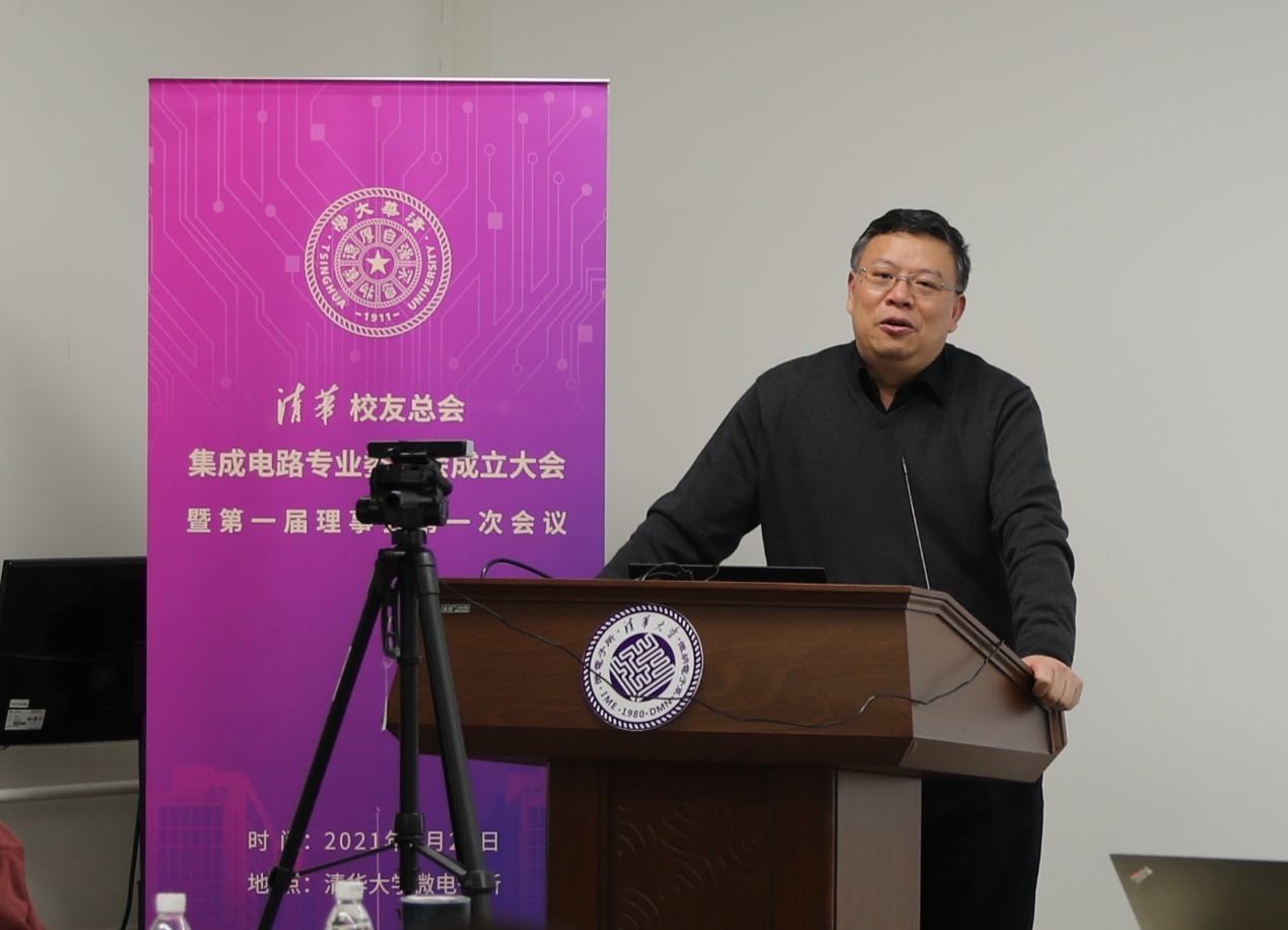 专委会秘书长刘卫东代表秘书处发言。刘卫东表示,专委会秘书处将在学校和清华校友总会的指导下、在微纳电子系的协助下、在各界校友们的鼎力支持下,全力以赴,努力做好专委会工作,搭建集成电路校友的服务平台和资源共享平台,为母校发展和行业进步作出贡献。