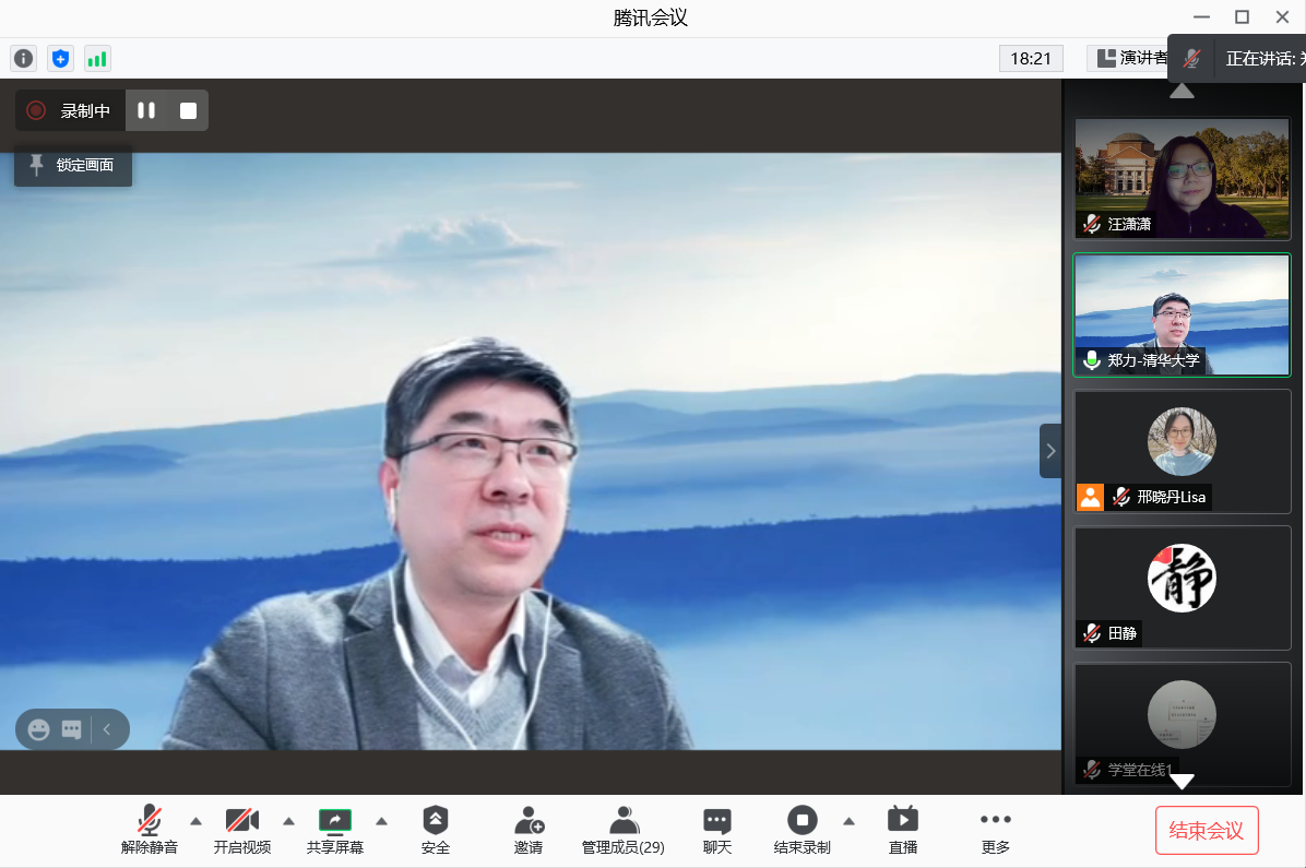 郑力在致辞中首先代表学校对参加本次进修的教师表示欢迎,他指出,2020年是非常不平凡的一年,疫情对正常教学造成很大冲击,但是对于在线教育来说却是发展的机会。在过去一年里,利用在线的形式,教育教学有非常多的进展。他谈到,2021年1月27日上午,教育部举行2021年首场新闻发布会,发布加强新时代高校教师队伍建设改革、深化高等学校教师职称制度改革有关文件,其中强调了把提升高校教师教书育人能力作为基本要求。在此基础上,清华大学发起了新时代高校教师融合式教学公益进修项目,旨在利用在线教育,为希望提升自身教学学术水平与信息化教学能力的教师提供契机,加入原汁原味的清华课堂,亲身体验清华线上线下融合式教学。他希望学员们可以分享体会、反馈建议,也祝愿大家能够在这一学期的学习中有所得,并能让这些所得对未来的工作学习和生活起到促进作用。希望大家携手共进,为我们国家的高等教育事业发展贡献自己的一份力量。