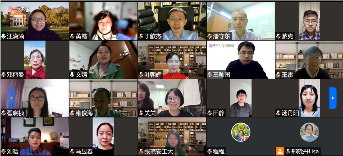 部分学员分享了自己的心得体会。安徽工业大学建筑学院张琼说,知道本次课程时就毫不犹豫地报了名,既是为了圆一个清华梦,也是想要更好地拥抱面向未来的教育新形式。在接下来的四个月里,愿和同学们一起,且学且悟,且行且思,学以致用,知行并进。广西医科大学基础医学院赵文婧说,项目对于个人的成长和教学的改进很有帮助,雨课堂+学堂在线+在线会议系统多技术平台的无缝对接使用、多教学场景的转换,突破了时间和空间的限制。