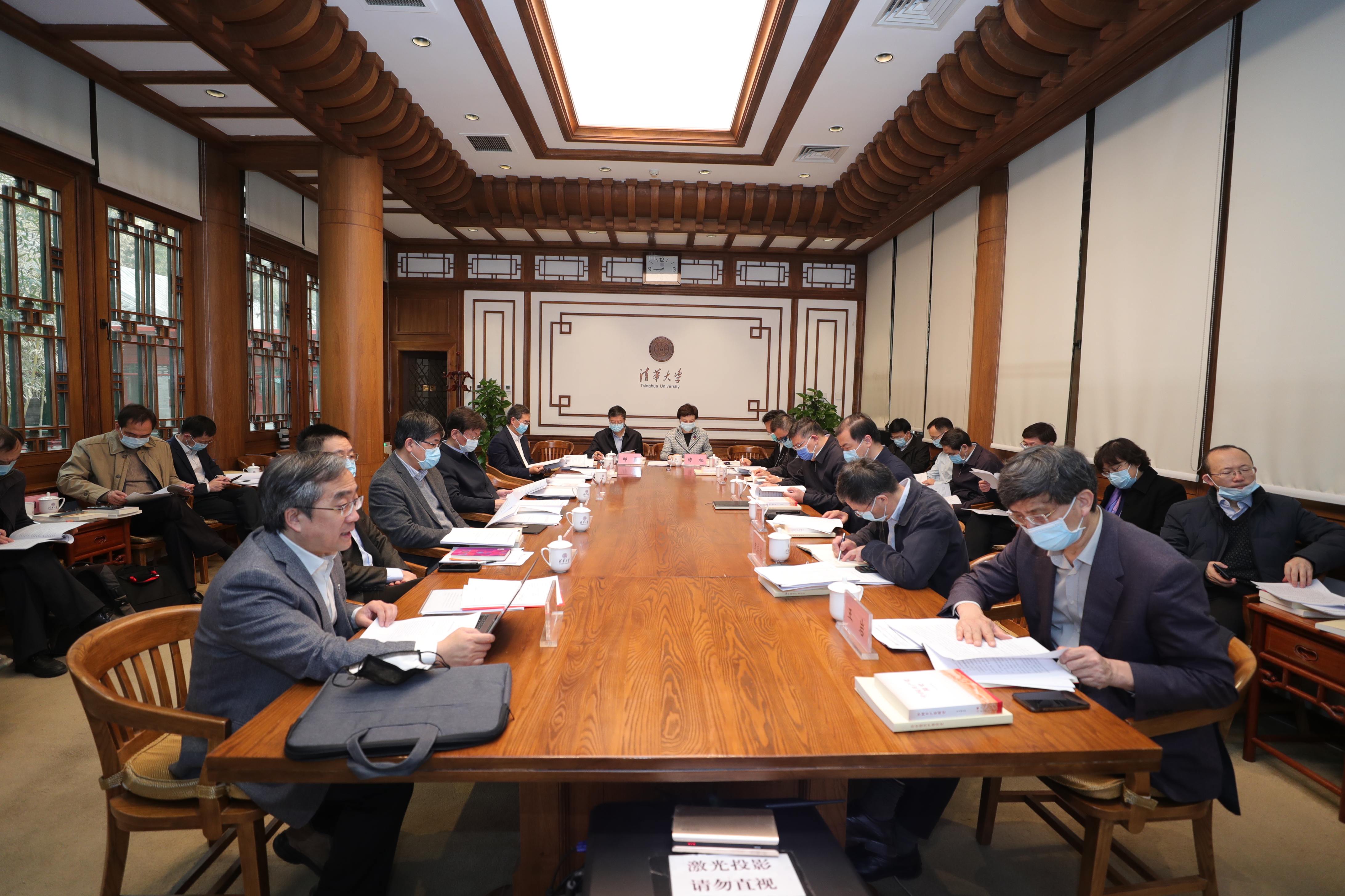 清华新闻网3月18日电(记者 李晨晖 摄影 李派)3月17日上午,清华大学第十四届党委第八次全体会议在工字厅东厅召开。会议审议学校党史学习教育方案、补选校党委委员候选人提名,通报学校年度工作要点及党委工作计划,并讨论110周年校庆工作。校党委书记陈旭主持会议,校党委副书记、校长邱勇等全体委员参加。
