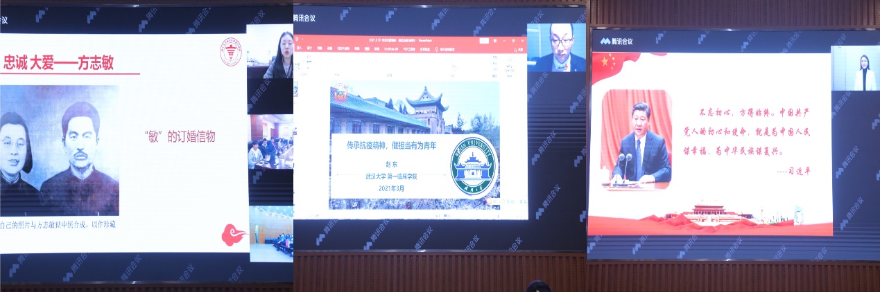 浙江大学生物系统工程与食品科学学院2018级博士生周芩安以“从不同时代看青年使命”为题,通过丰富的细节、翔实的故事讲述了方志敏、程开甲、朱光亚等不同时代共产党员的爱国奉献精神,鼓励新时代青年担起使命,让青春在党和人民最需要的地方绽放。武汉大学第一临床学院2018级博士生赵东紧扣“传承抗疫精神,做担当有为青年”的主题,从自身亲历的抗疫故事中阐释抗疫精神的内涵,倡议青年同辈们将抗疫精神化作平凡岗位上干事创业的激情与力量。郑州大学政治与公共管理学院2018级博士生张慧远以“铭记百年党史,坚守初心使命”为主题,透过中国近现代百年历史风云的长镜头,展现中国共产党人筚路蓝缕、创造辉煌的奋斗历程,勉励新时代青年以党史学习为契机,不忘初心再出发。