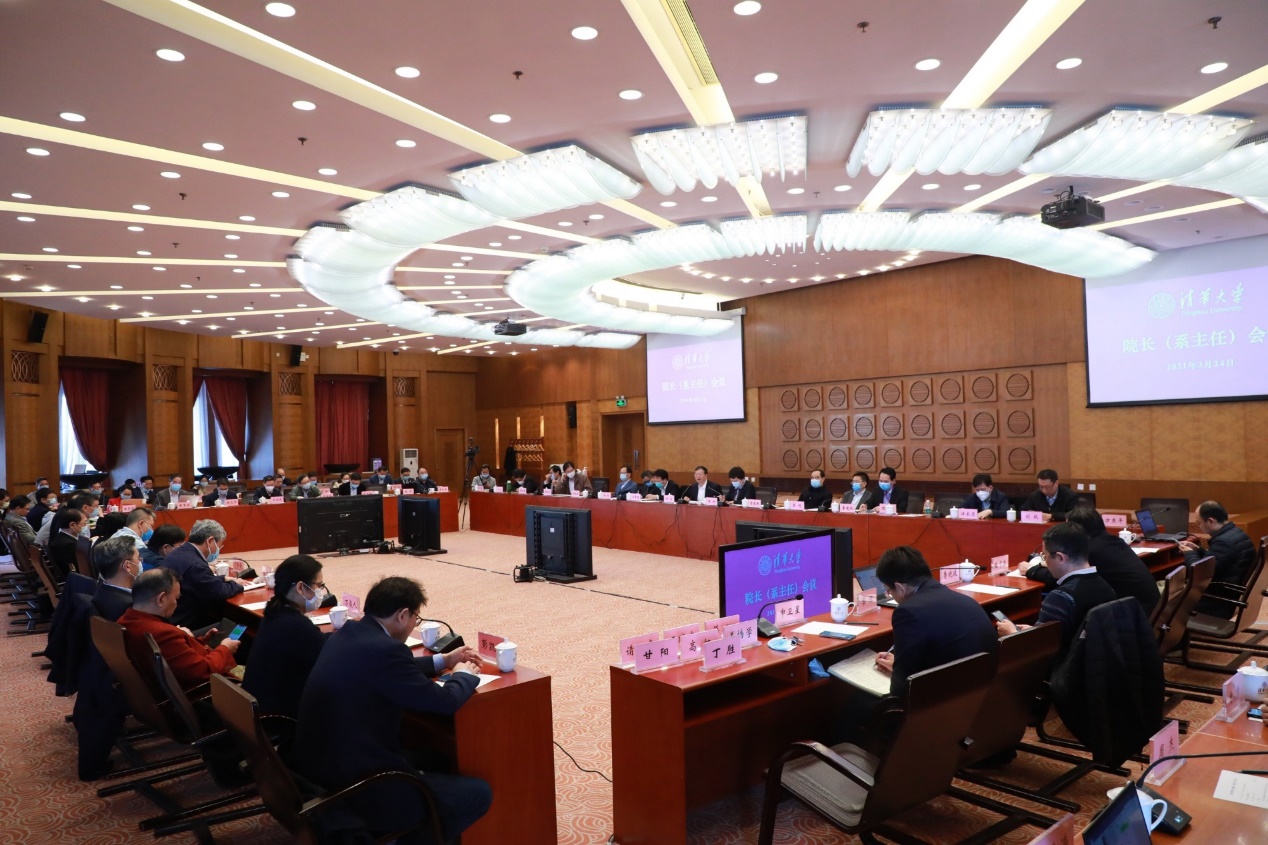 清华新闻网3月27日电(记者 冯哲盈 摄影 石加东)3月24日下午,清华大学2021年第一次院长(系主任)会议在主楼接待厅举行。会议对学校近期工作进行通报讨论,并对下一阶段重点工作作出部署。校长邱勇主持会议,校党委书记陈旭,常务副校长王希勤,副校长吉俊民、杨斌、彭刚等出席会议。