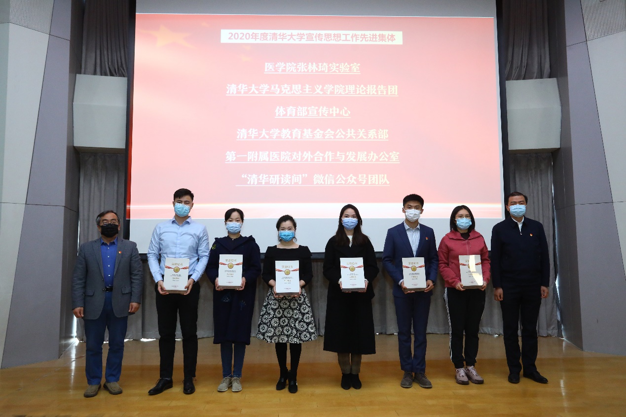 会议还对2020年度学校宣传思想工作先进集体和先进个人进行了表彰。北京清华长庚医院宣传中心等18个团队获得“2020年度清华大学宣传思想工作先进集体”荣誉称号;学生社区中心陈周等49名同志获得“2020年度清华大学宣传思想工作先进个人”荣誉称号。